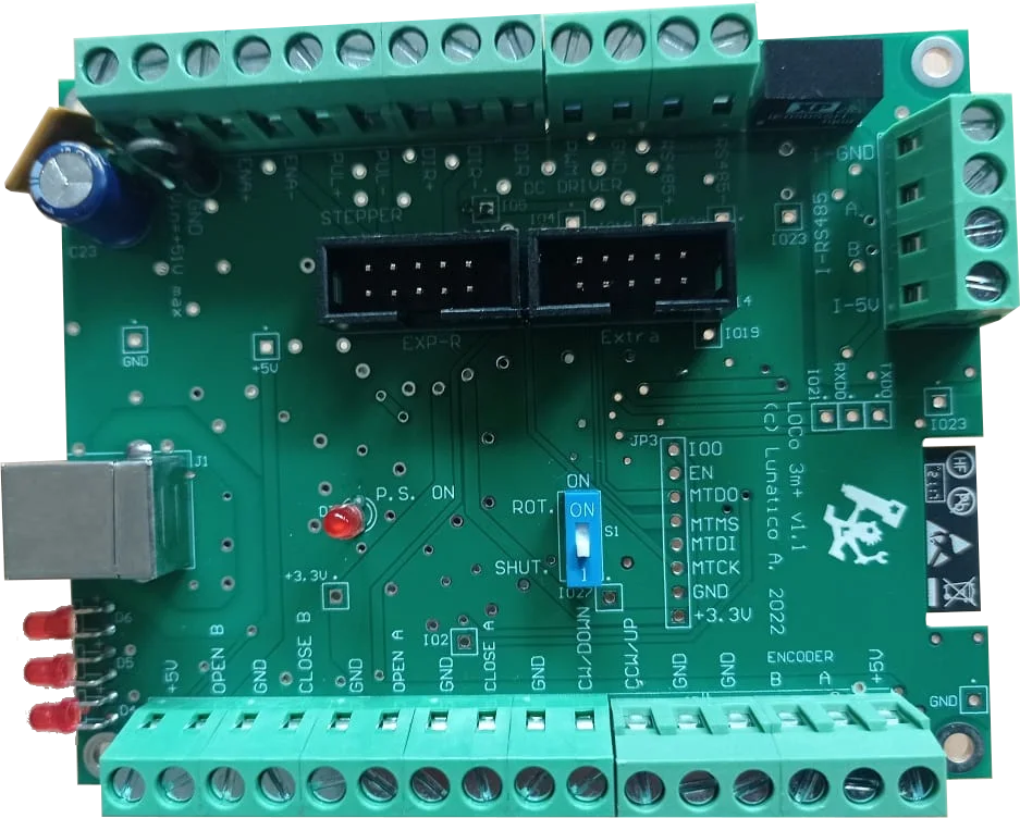 - Support for stepper, DC and three-phase motors (Caterpillar full controller, using external drivers)
