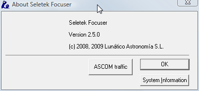 From here we can press “ASCOM traffic” if we feel curiosity to see how other applications dialog with the Seletek: