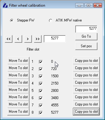 ... and let's assume you have a properly wired, stepper-based filter wheel hooked to the Seletek. In this window we'll define the position, in motor steps, for all available slots.